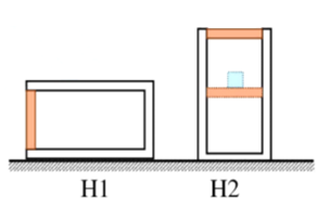Như hình H1, một xi lanh nằm ngang trên mặt phẳng nằm ngang, piston có khối lượng 1 kg đặt ở miệng xi lanh bị kín một lượng khí ở nhiệt độ 270C trong xi lanh. Khi xi lanh được quay từ từ theo chiều kim đồng hồ đến vị trí thẳng đứng như hình H2, vị trí của piston trong xi lanh không thay đổi trong quá trình xi lanh quay, nhiệt độ của khí lúc này là 1770C. Sau đó, giữ nhiệt độ không đổi và thêm một gia trọng Δm phía trên piston thì piston nén thể tích khí giảm đi một nửa khi ổn định. Biết áp suất khí quyển là 105 Pa và g = 10 m/s2. Khối lượng Δm bằng bao nhiêu kg (làm tròn đến hàng đơn vị)?