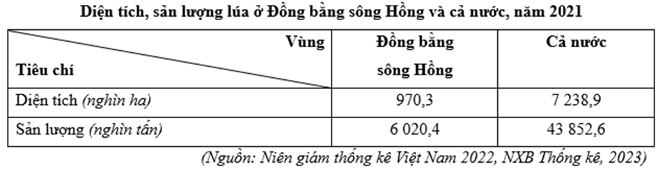 Căn cứ vào bảng số liệu trên, hãy cho biết năm 2021 năng suất lúa của Đồng bằng sông Hồng cao hơn cả nước là bao nhiêu tạ/ha (Làm tròn kết quả đến hai chữ số thập phân).