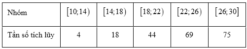 | a) Nhóm chứa tứ phân vị thứ nhất là \(\left[ {18;22} \right)\). | ||