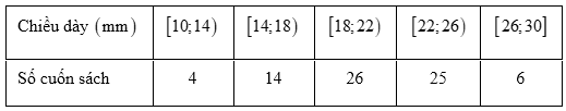 Bảng sau đây hiển thị chiều dày của 75 cuốn sách trong một khu vực của thư viện: