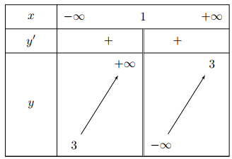 Cho hàm số \(y = f\left( x \right)\) xác định trên \(\mathbb{R}\backslash \left\{ 1 \right\}\), liên tục