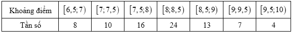 Thống kê điểm trung bình môn Toán của một số học sinh lớp 11 được cho ở bảng như