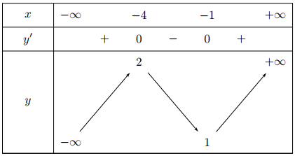 Dựa vào bảng biến thiên. Điểm cực đại là điểm y’ đổi dấu từ âm sang dương khi đi qua.