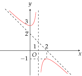 Cho đồ thị hàm số hữu tỉ \(y = ax + 2 + \dfrac{b}{{x + c}}\) có đồ thị như hình vẽ sau. Tính \(P = 25a + 11b - 2024c\)