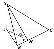 Gọi \(H\) là hình chiếu vuông góc của \(A\) trên \(BC\). Ta có \(\alpha = \left[ {S,BC,A} \right] = \angle {SHA}\) từ đó tính AH và thể tích.