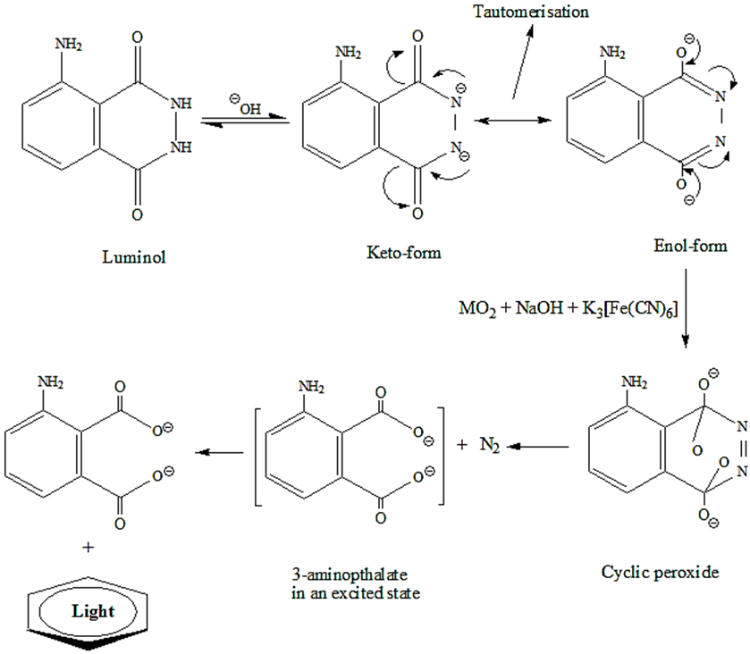 Khi không có mặt hydro peroxide, luminol vẫn phản được với ion sắt của nhân hemglobin trong tế bào hồng cầu để phát ra ánh sáng.