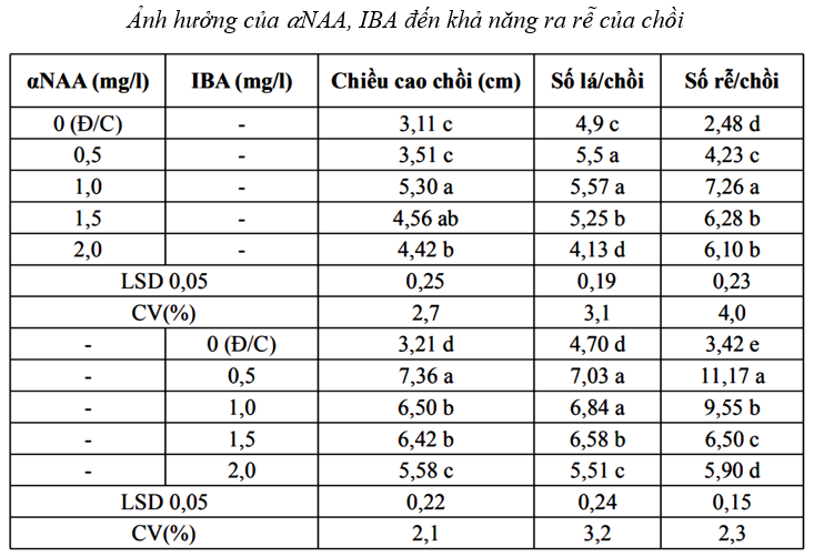 - Xem hàng IBA 0,5 mg/l và cột “Số rễ/chồi”.