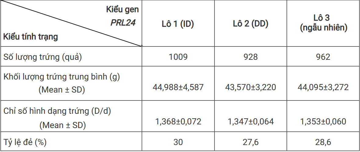 Tìm yếu tố liên quan đến sản lượng trứng từ thông tin gen PRL.