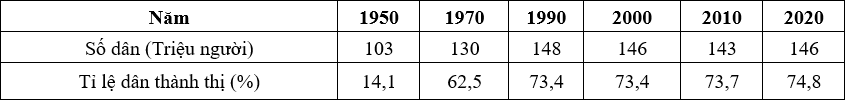 Cho bảng số liệu: Số dân và tỉ lệ dân thành thị của Liên bang Nga giai đoạn 1950 -