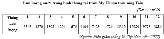Theo bảng số liệu và dựa vào kiến thức đã học, phát biểu nào sau đây đúng về mùa lũ của sông Tiền?