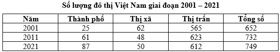 Nhận xét nào sau đây đúng với bảng số liệu trên?