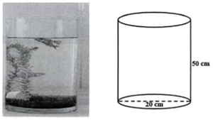 Bên trong một bể cá hình trụ bằng kính người ta đo được chiều cao là 50cm và đường kính