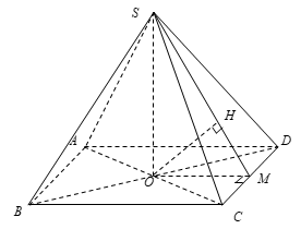 Cho hình chóp tứ giác đều \(S.ABCD\) có tất cả các cạnh đều bằng \(a\). Gọi \(O\) là tâm đáy và \(M\) là trung điểm \(CD\). Tính khoảng cách từ \(O\) tới đường thẳng \(SM\).