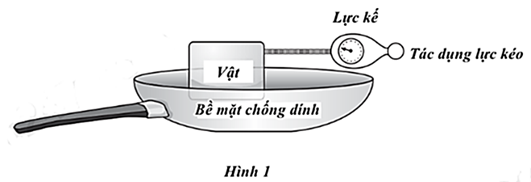 Một học sinh nối một cân lò xo với một quả nặng đặt bên trong một dụng cụ nấu chống dính như trong Hình 1.
