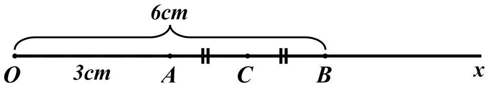Trên tia \(Ox\) lấy hai điểm \(A\) và \(B\) sao cho \(OA = 3\;cm;\,\,OB = 6\,cm.\) Lấy điểm \(C\) trên tia \(Ox\) sao cho \(C\) là trung điểm của đoạn thẳng \(AB.\)