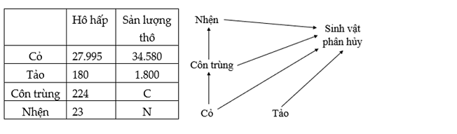 Phân tích kĩ số liệu trong bảng và lưới thức ăn được cung cấp.