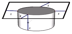Trên một mảnh đất hình vuông có diện tích \(121{m^2}\) người ta đào một cái ao nuôi cá hình trụ sao cho tâm của hình tròn đáy trùng với tâm của mảnh đất. Ở giữa mép ao và mép mảnh đất người ta để lại một khoảng đất trống để đi lại, biết khoảng cách nhỏ nhất giữa mép ao và mép mảnh đất là \(x\,\,\left( m \right)\). Giả sử chiều sâu của ao cũng là \(x\,\,\left( m \right)\) thì thể tích của ao lớn nhất bằng bao nhiêu? (tham khảo hình vẽ bên dưới, kết quả làm tròn kết quả đến hàng phần mười).