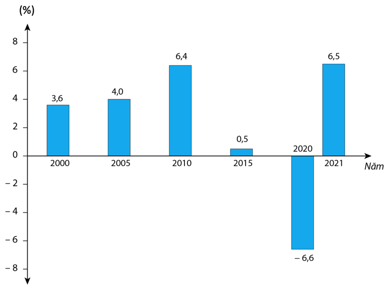 Biểu đồ dưới đây thể hiện nội dung nào về GDP của Mĩ La tinh giai đoạn 2000 – 2021?