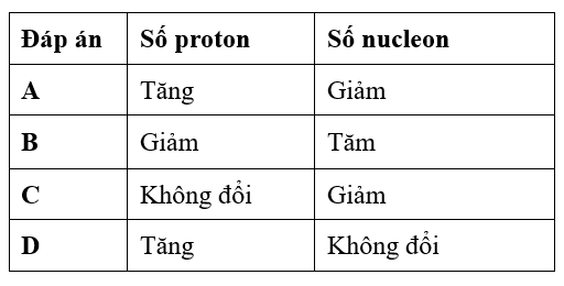 Sự phân rã của hạt nhân neptunium đi kèm với sự phát xạ của hạt \(\beta \) và bức xạ \(\gamma \). Sự phân rã này có tác động gì (nếu có) đến số proton và số nucleon của hạt nhân?
