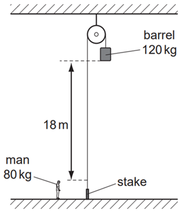 Khối lượng của thùng là 120kg và khối lượng của người đàn ông là 80kg.