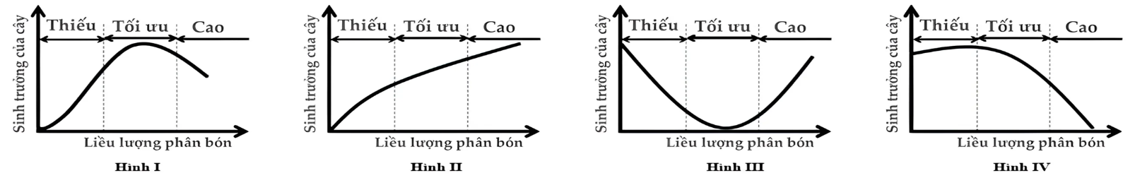 Đồ thị nào dưới đây biểu diễn chính xác mối tương quan giữa liều lượng phân bón và mức