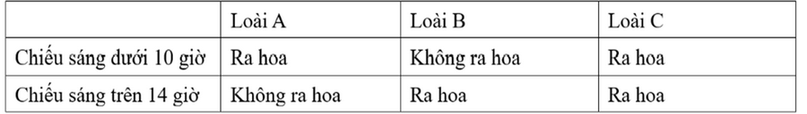 Ở một nghiên cứu sự ra hoa của 3 loài thực vật và nhận được kết quả như sau:
