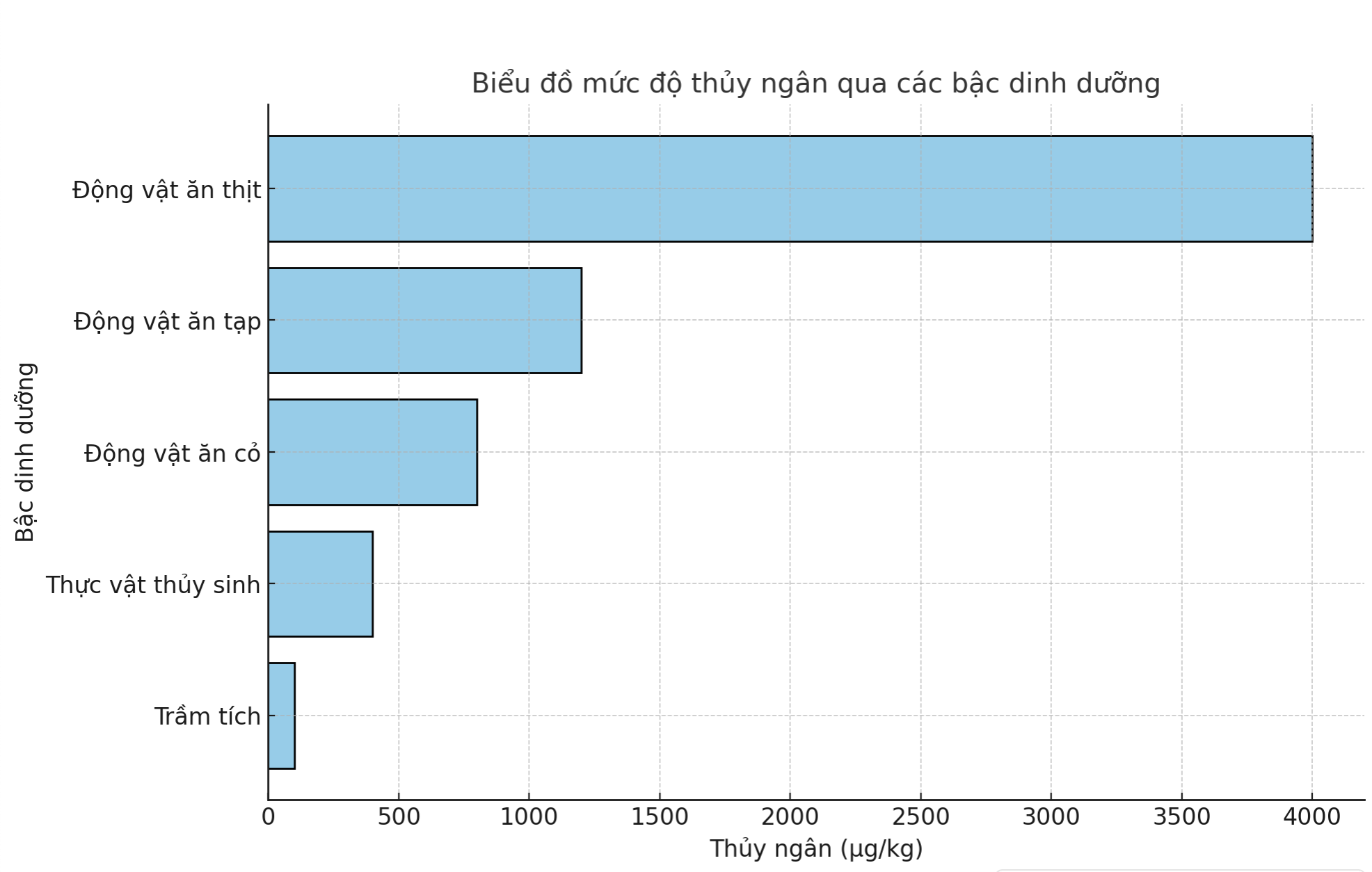 - Động vật ăn cỏ có nồng độ thủy ngân cao hơn thực vật thủy sinh.