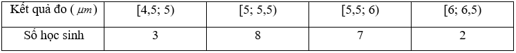 Một nhóm 20 học sinh dùng một thiết bị đo đường kính của một nhân tế bào cho kết quả như sau: