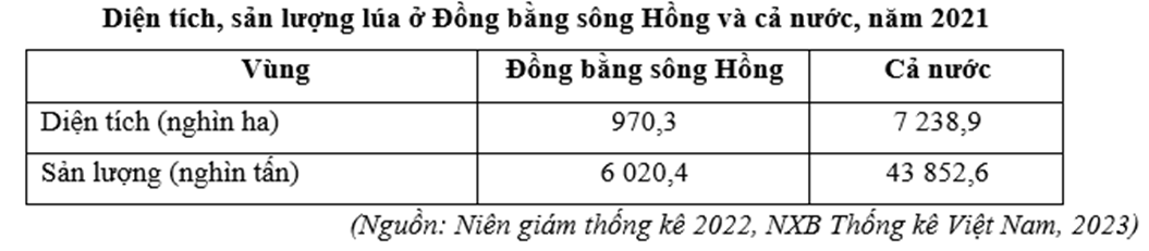 Căn cứ vào bảng số liệu trên, hãy cho biết năm 2021 năng suất lúa của Đồng bằng sông Hồng cao hơn cả nước là bao nhiêu tạ/ha? (làm tròn kết quả đến hai chữ số thập phân)