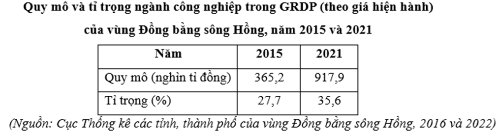 Căn cứ vào bảng số liệu trên, cho biết tốc độ tăng trưởng quy mô ngành công nghiệp trong GRDP cả nước năm 2021 là bao nhiêu phần trăm (làm tròn kết quả đến hàng đơn vị).