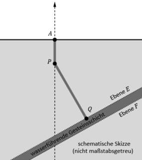Nhà máy địa nhiệt sử dụng nhiệt từ lòng đất để tạo ra điện hoặc cung cấp năng lượng cho các mục đích sưởi ấm. Một nhà máy địa nhiệt bơm nước nóng từ một lớp đá chứa nước lên mặt đất thông qua một hệ thống ống dẫn. Hệ thống này được mô hình với mặt phẳng \(Oxy\) của hệ trục tọa độ tương ứng với bề mặt Trái Đất, mỗi đơn vị độ dài trong hệ tọa độ tương ứng với một 1000m trong thực tế. Ống dẫn nước bao gồm hai đoạn, được mô hình hóa bởi các đoạn thẳng \(AP\) và \(PQ\) với các điểm \(A(0;0; 0)\), \(P(0;0;-1)\) và \(Q\left(1 ; 1 ; \dfrac{-7}{2}\right)\).
