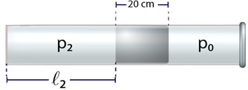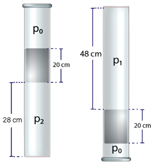 Một ống thuỷ tinh tiết diện đều gồn một đầu kín, một đầu hở. Trong ống chứa một cột không khí được ngăn bởi cột thuỷ ngân dài 20 cm. Khi đặt ống thẳng đứng miệng ở dưới thì chiều dài không khí là 48 cm, miệng ở trên thì chiều dài cột không khí là 28 cm.