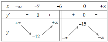 Cho hàm số \(y = f\left( x \right)\) xác định trên \(\mathbb{R}\backslash \left\{ { - 6} \right\}\) và có bảng biến thiên như sau