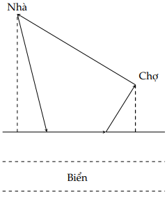 Nhà thầy Hùng cách bờ biển 1km. Mỗi buổi sáng thầy chạy bộ từ nhà ra bờ biển sau đó chạy dọc bờ biển 500m, rồi thầy chạy qua chợ hải sản để lấy thức ăn trong ngày, cuối cùng thầy chạy về nhà. Biết chợ hải sản cách bờ biển 400m và cách nhà thầy Hùng 1km, tính quãng đường ngắn nhất mà thầy Hùng đã chạy trong mỗi buổi sáng (đơn vị m và làm tròn đến hàng đơn vị)