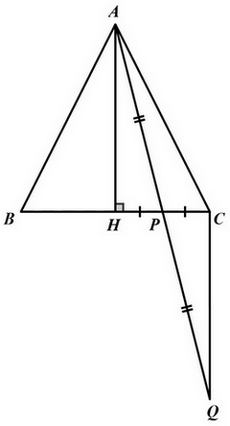 Cho tam giác \(ABC\) cân tại \(A\), kẻ \(AH\) vuông góc với \(BC\) \(\left( {H \in BC} \right)\). Gọi \(P\) là trung điểm của \(HC\). Trên tia đối của tia \(PA\) lấy điểm \(Q\) sao cho \(QP = PA\).