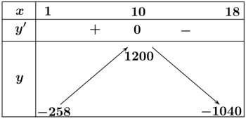 Một hộ làm nghề dệt vải lụa tơ tằm sản suất mỗi ngày được \(x\) mét vải lụa \((1 \leq x \leq 18)\). Tổng chi phí sản xuất \(x\) mét vải lụa, tính bằng nghìn đồng, cho bởi hàm chi phí: \(C(x)=x^3-3 x^2-20 x+500\). Giả sử hộ làm nghề dệt này bán hết sản phẩm mỗi ngày với giá 220 nghìn đồng/mét. Gọi \(L(x)\) là lợi nhuận thu được khi bán \(x\) mét vải lụa. Hỏi lợi nhuận tối đa của hộ làm nghề dệt vải lụa tơ tằm trong một ngày là bao nhiêu (đơn vị nghìn đồng)?