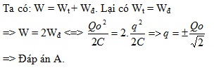 Cho một mạch LC lí tưởng, khi năng lượng điện trưởng ở tụ bằng năng lượng từ ở cuộn dây thì tỉ số điện tích trên tụ điện tại thời điểm đó và giá trị cực đại của nó là: