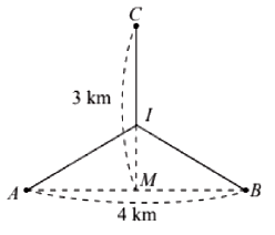 Hai nhà máy được đặt tại các vị trí \(A\)và \(B\)cách nhau \(4{\rm{ }}km.\)Nhà máy xử lí nước thải được đặt ở vị trí \(C\)trên đường trung trực của đoạn thẳng\(AB\), cách trung điểm \(M\)của đoạn thẳng\(\;AB\) một khoảng là \(3{\rm{ }}km{\rm{ }}.\)Người ta muốn làm đường ống dẫn nước thải từ hai nhà máy \(A,{\rm{ }}B\) đến nhà máy xử lí nước thải\(\;C\) gồm các đoạn thẳng \(AI,{\rm{ }}BI\)và \(IC,\)với \(I\)là vị trí nằm giữa \(M\)và \(C.\) Cần chọn vị trí điểm \(I\) để tổng độ dài đường ống nhỏ nhất, giá trị nhỏ nhất đó là bao nhiêu\(km\). (làm tròn kết quả đến hàng phần trăm).