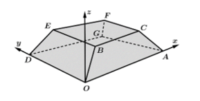 Hình vẽ minh hoạ hình ảnh một toà nhà trong không gian với hệ toạ độ \(Oxyz\) (đơn vị trên mỗi trục toạ độ là mét).