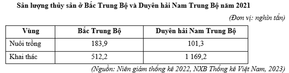 | d) Bắc Trung Bộ có sản lượng thủy sản nuôi trồng cao hơn Duyên hải Nam Trung Bộ là do biển có nhiều cá tôm hơn. |