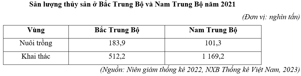 | a) Sản lượng thủy sản của Nam Trung Bộ cao hơn Bắc Trung Bộ. | ||