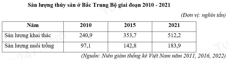 | b) Sản lượng thủy sản nuôi trồng tăng nhanh hơn khai thác. | ||