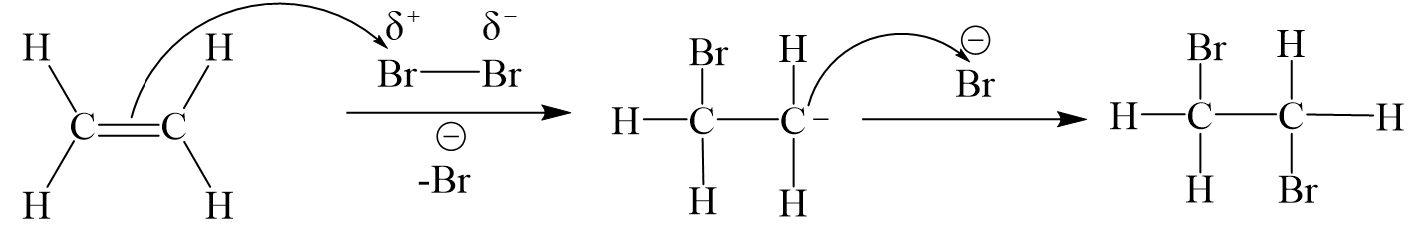 CH2=CH2 + Br2 ⟶ CH3Br2 – CH2Br2