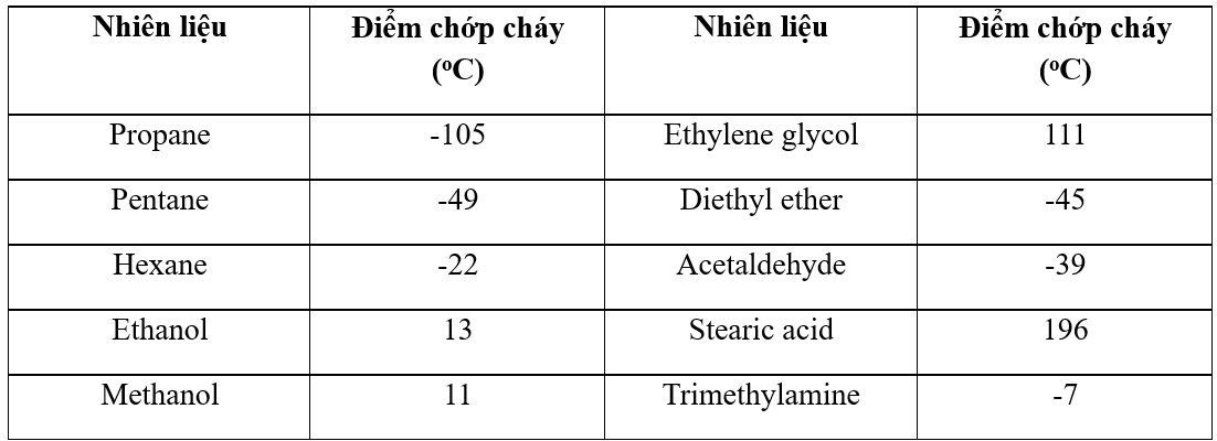 Chất lỏng ở điểm chớp cháy < 37,8oC gọi là chất lỏng dễ cháy.