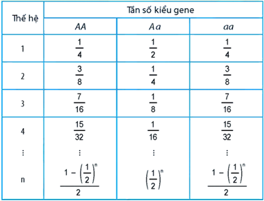 Với 2 gene allele A và a, bắt đầu bằng 1 cá thể có kiểu gene Aa. Ở thế hệ tự thụ thứ n, kết quả sẽ là
