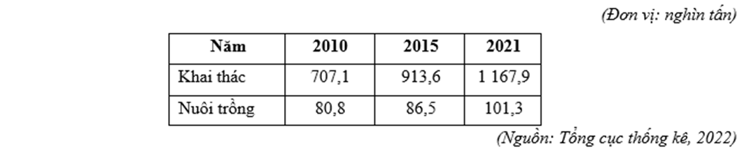 Cho bảng số liệu: Sản lượng hải sản khai thác và nuôi trồng ở Nam Trung Bộ