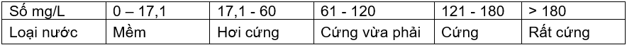 Ở Việt Nam, độ cứng của nước thường được đánh giá dựa vào số mg CaCO3 ứng với tổng