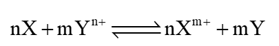 \({K_C} = {10^{\frac{{a.(E_{{Y^{n + }}/Y}^o - E_{{X^{m + }}/X}^o)}}{{0,0592}}}}\)