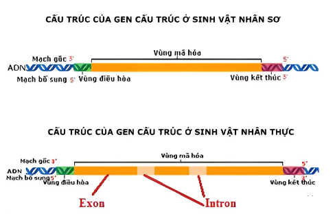 Dựa vào cấu trúc gene, quá trình phiên mã ở sinh vật nhân sơ và nhân thực.