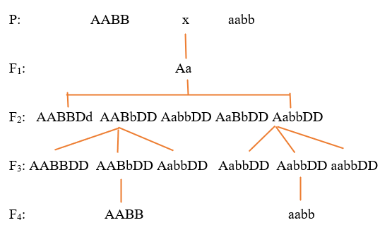 + F4 là kết quả sau khi chọn lọc ở F3 và tiếp tục tiến hành nhân thêm nhiều cá thể có kiểu gene đồng hợp, tạo ra quần thể giống có kiểu gene mong muốn.